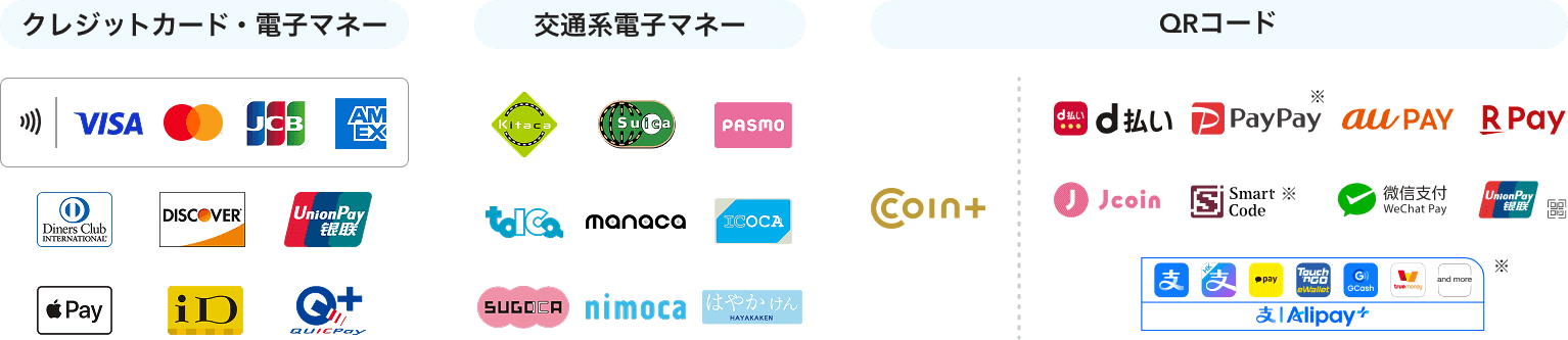 コンタクトレンズ代のお支払いは下記の各種キャッシュレス決済に対応しています(診察費は現金のみとなります)。